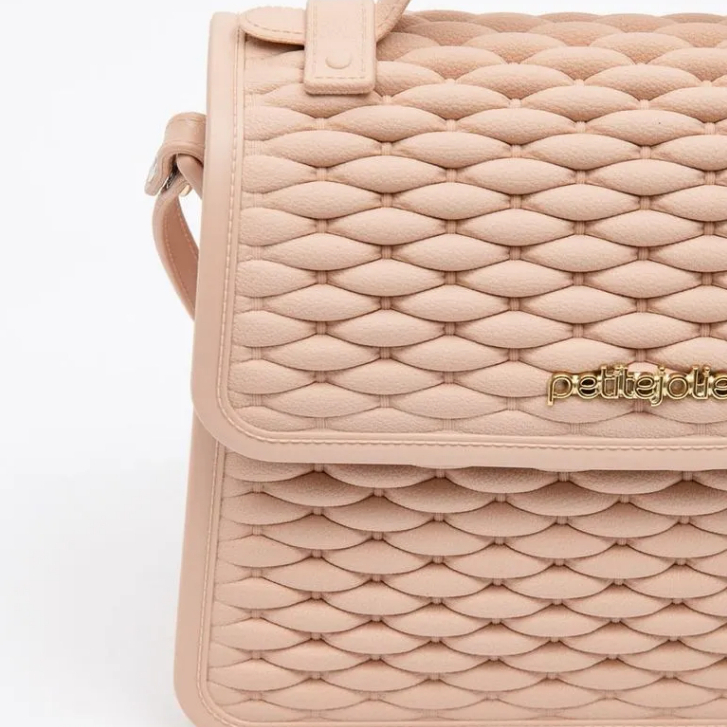 Material: J-Lastic (PVC exclusivo da Petite Jolie) Fechamento: Botão magnético Alça Tiracolo: 56 – 113 cm