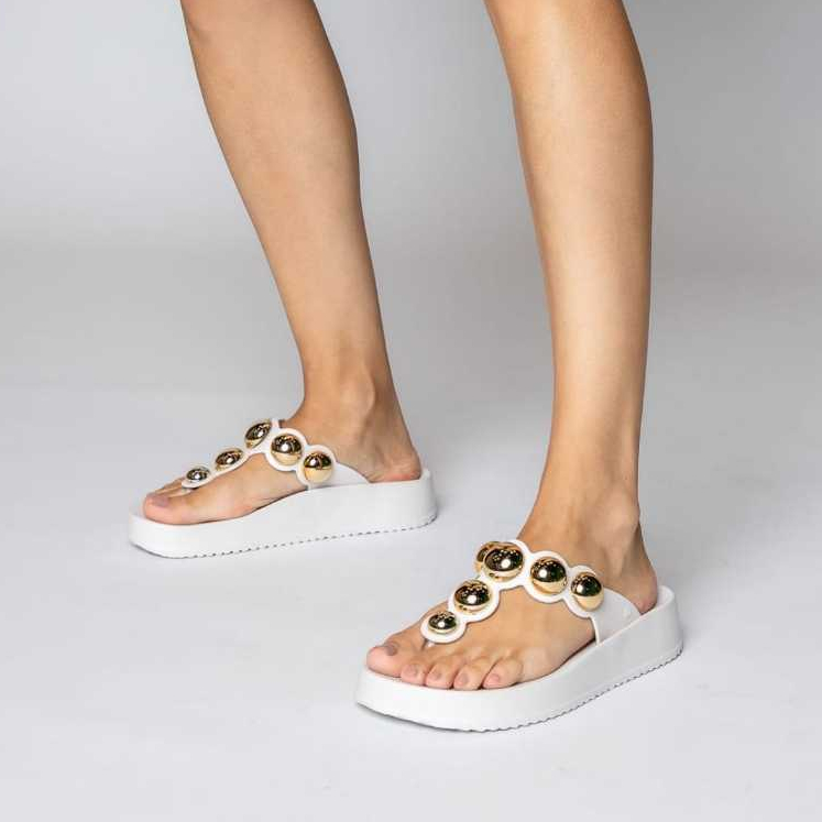 Com um design marcante e contemporâneo, este modelo é a escolha perfeita para quem busca unir estilo, personalidade e conforto. As aplicações de esferas metalizadas trazem um visual ousado e maximalista, elevando o look com um toque moderno e sofisticado. Ideal para compor produções que vão do casual ao fashionista, esse calçado é versátil e cheio de atitude.