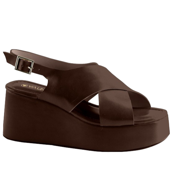 Características: Material em Napa | Tira em X | Salto anabela 6 cm (aprox.) | Confortável e estável | Via Uno Original.