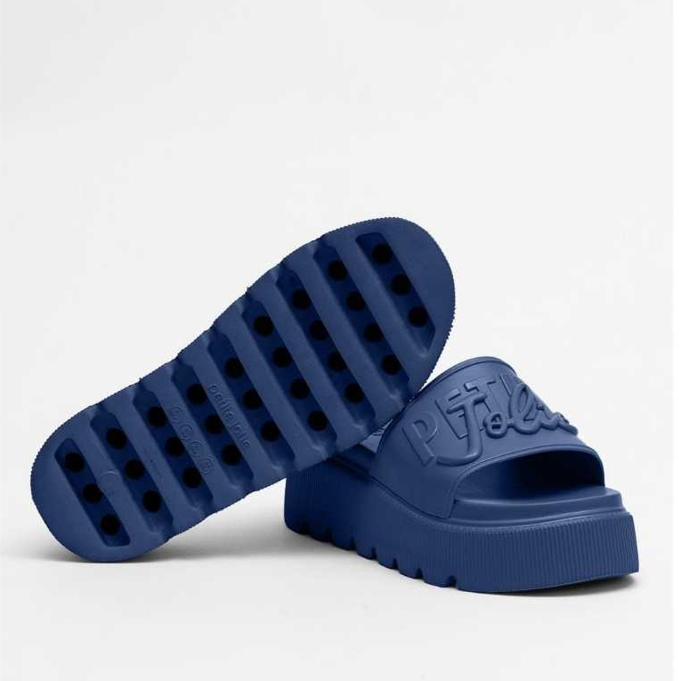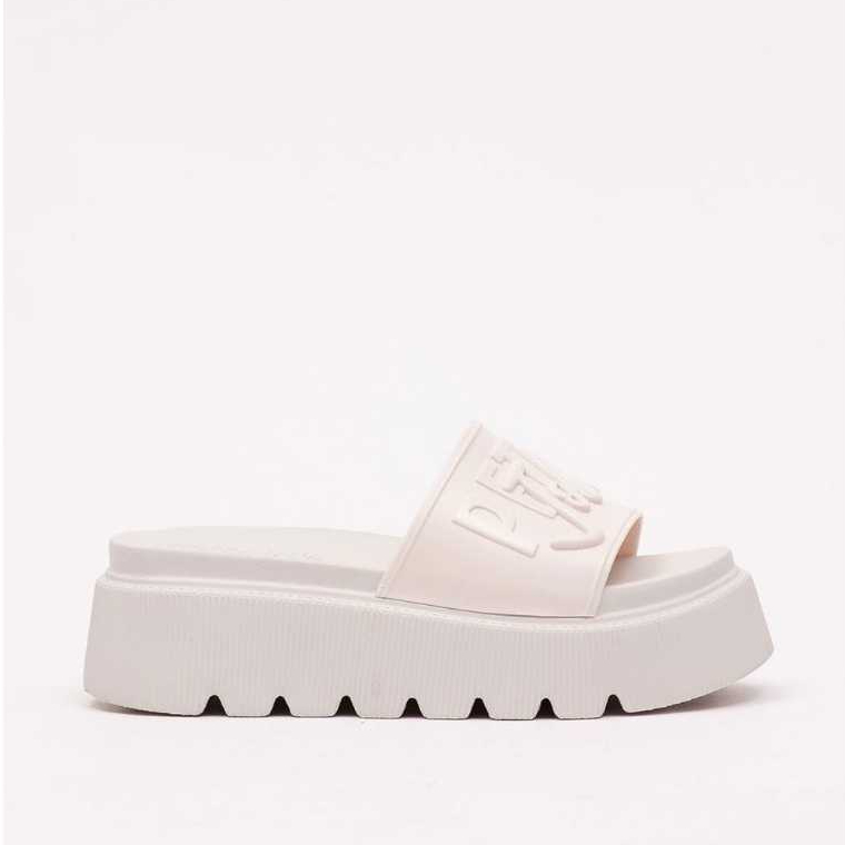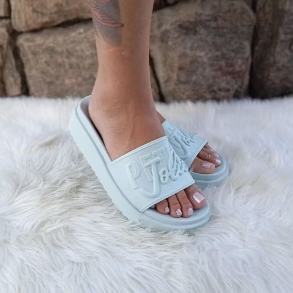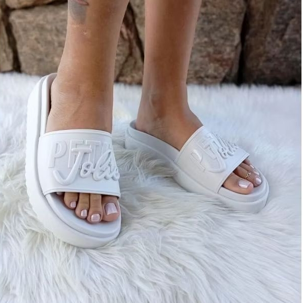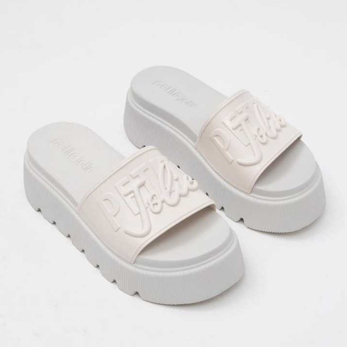 O novo slide da Petite Jolie conta com o solado de plataforma, levemente tratorado e com design esportivo. O chinelo Ray segue a tendência da logomania estilizada na única tira sobre o peito do pé. Proporciona o máximo de conforto durante todo o dia. Garanta o seu!